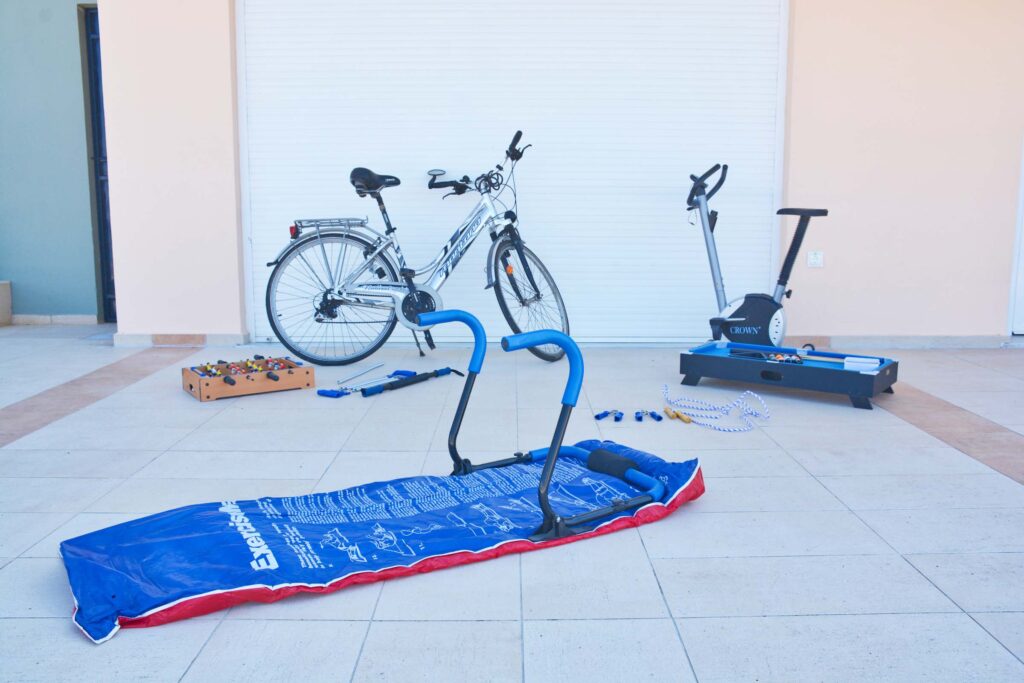 Fitness equipment and bicycles are available for exploring the surrounding area.